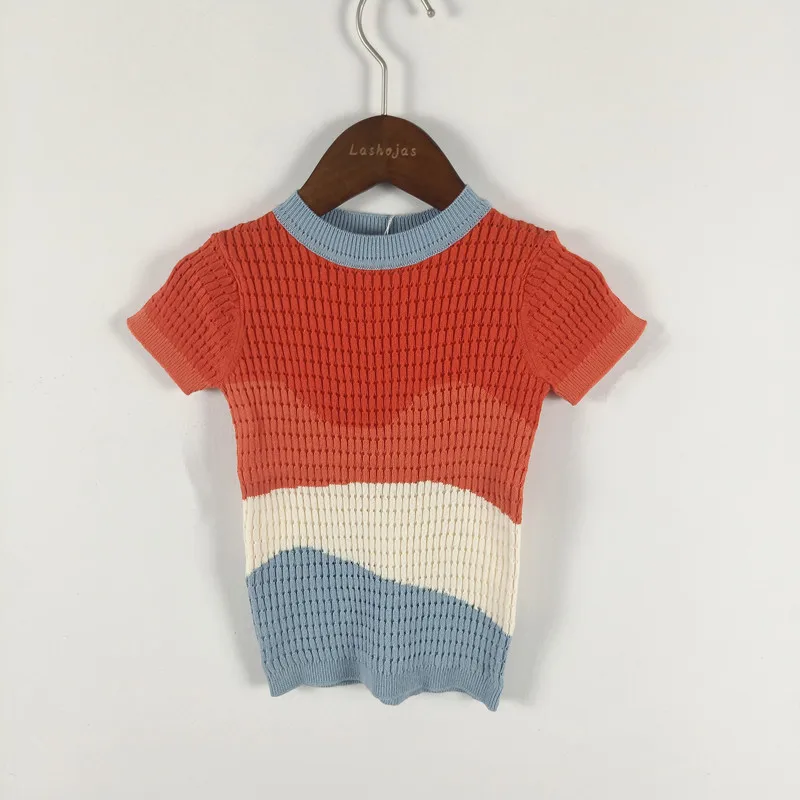 Детский тонкий свитер BOBOZONE, с волнистым узором, с коротким рукавом, для мальчиков и девочек, летний