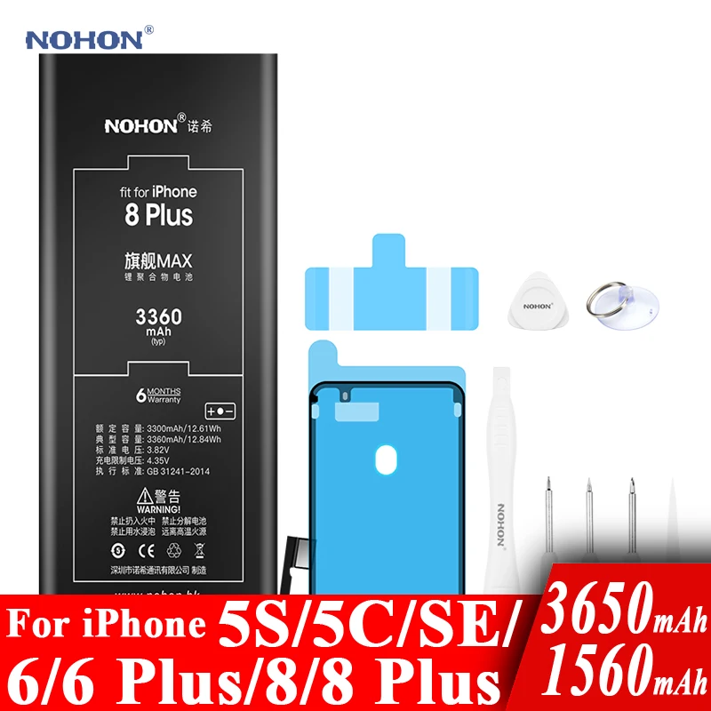 Аккумулятор Nohon для iPhone 8, 6 Plus, SE 5S, 5C, iPhone 8, 8Plus, 6 P, 1560-3650 мАч