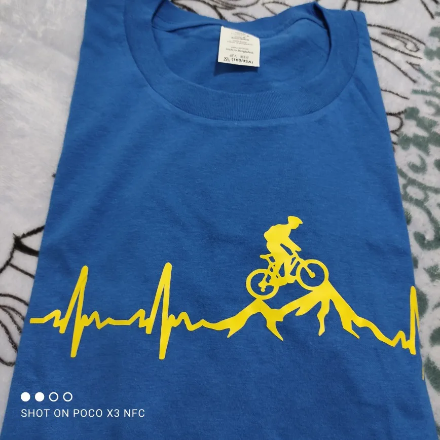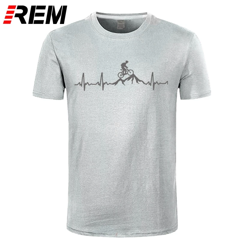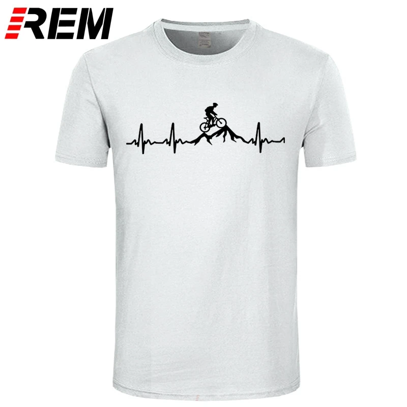 Мужская хлопковая футболка с коротким рукавом, с изображением сердцебиения горного велосипеда, Рем, размера плюс