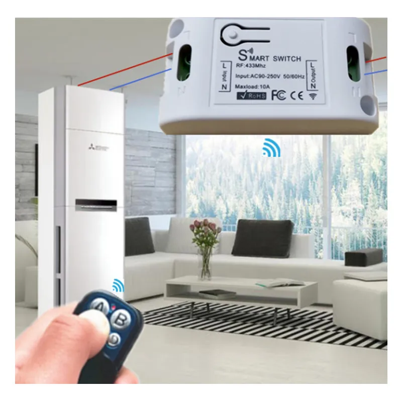 Этот Wi-Fi коммутатор является через Wi-Fi подключение к Интернету, с помощью мобильных телефонов можно дистанционно управлять бытовой техникой. Вы также можете использовать радиочастотный пульт дистанционного управления для управления. Это недорогое, доступное устройство, которое поможет вам шагнуть в удивительный смарт