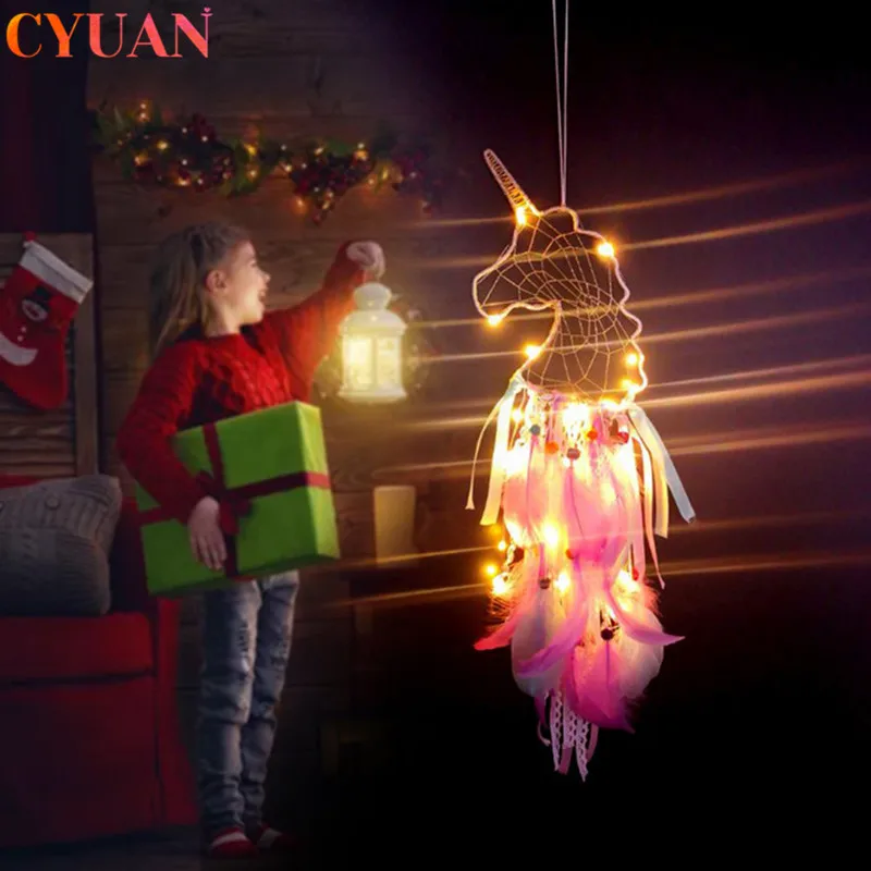 Единорог вечерние поставки с орнаментом в виде единорога из перьев ручной работы Ловушки для Спальня украшения подарок корабля, украшения для дома