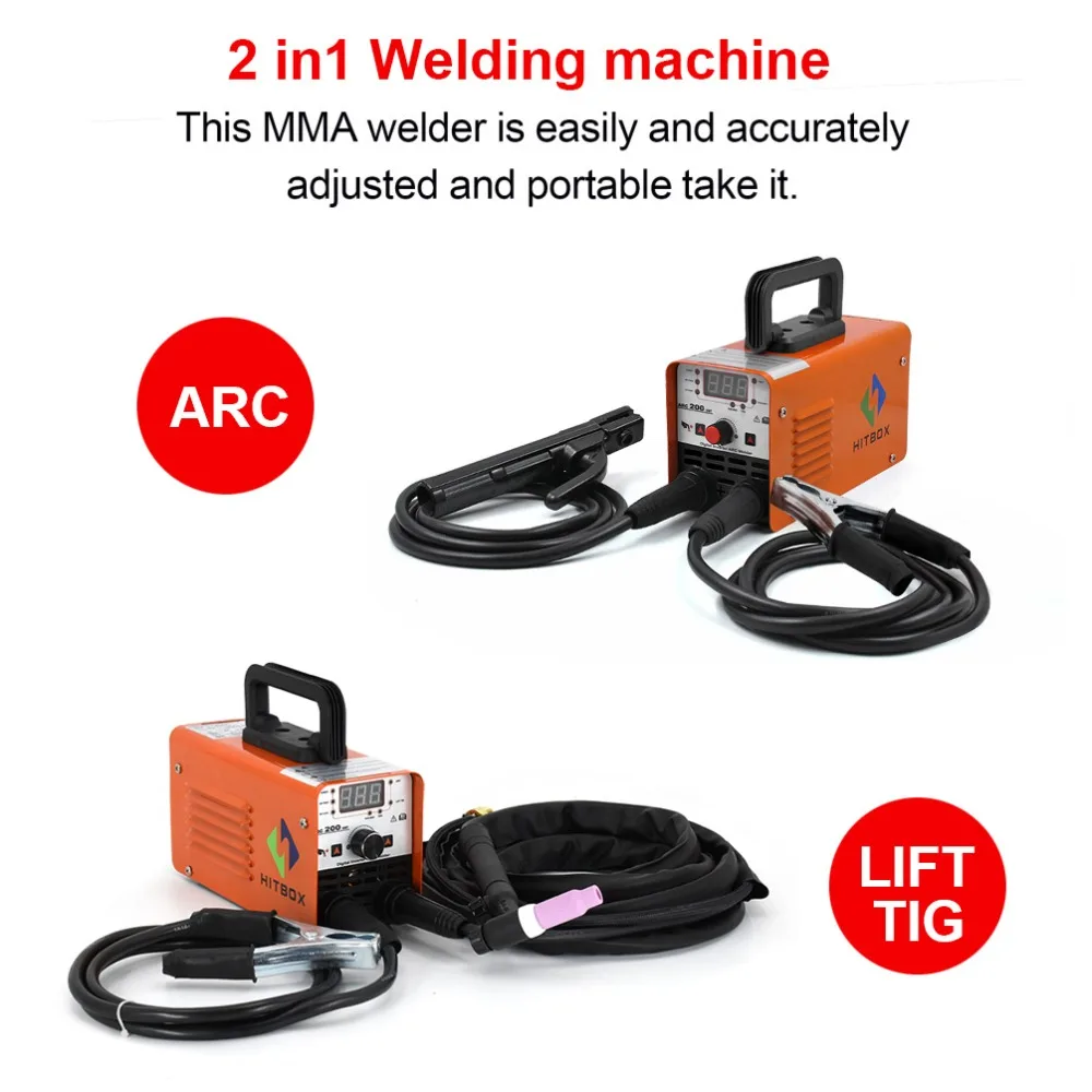 Сварочный аппарат HITBOX для дуговой сварки, ручка для сварки искусственных элементов, Улучшенная функция дуговой сварки, антипригарные стержни 1,6-3,2 мм, 220 В, защита VRD