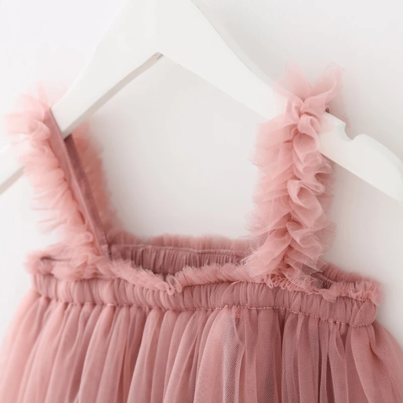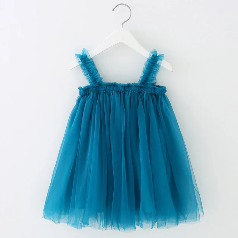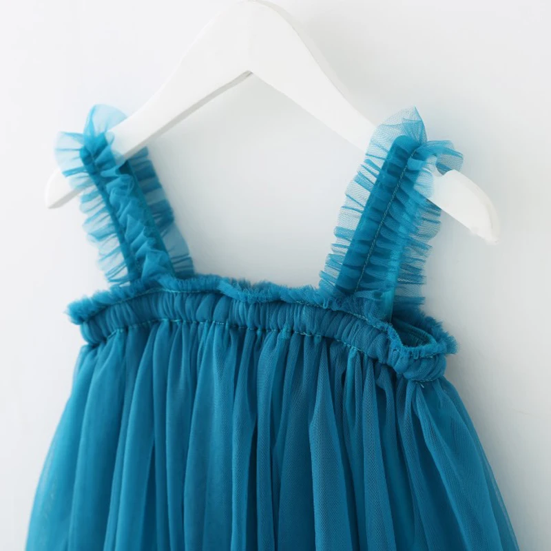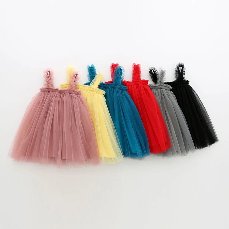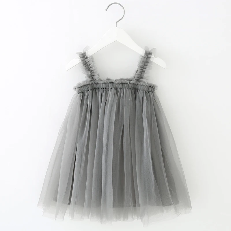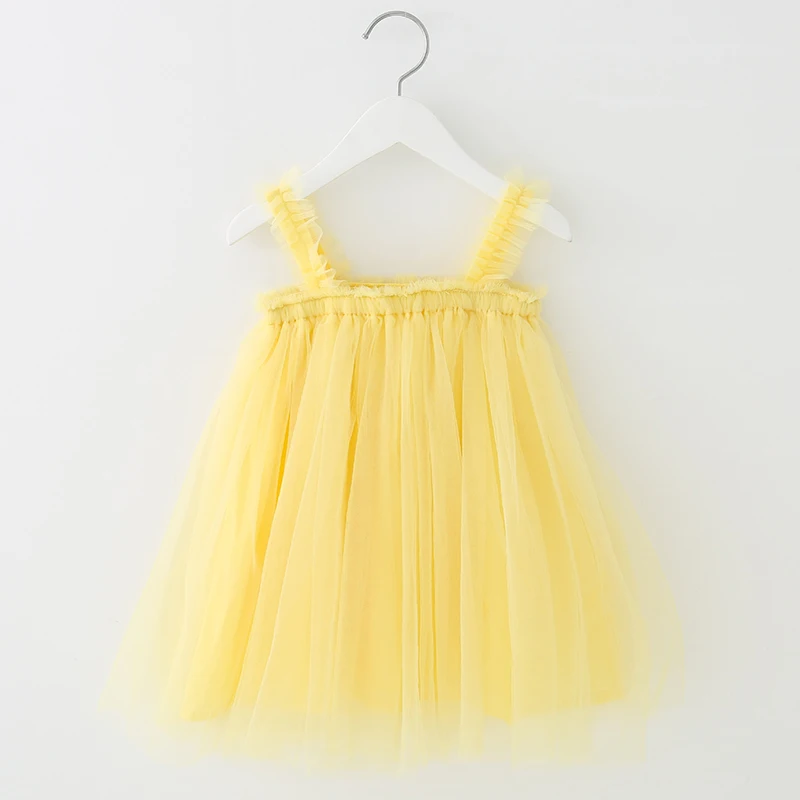 Платье на бретельках для девочек; Новинка 2022 года; Летний стиль; Детские кружевные однотонные платья принцессы; Одежда; Платье-пачка для маленьких девочек