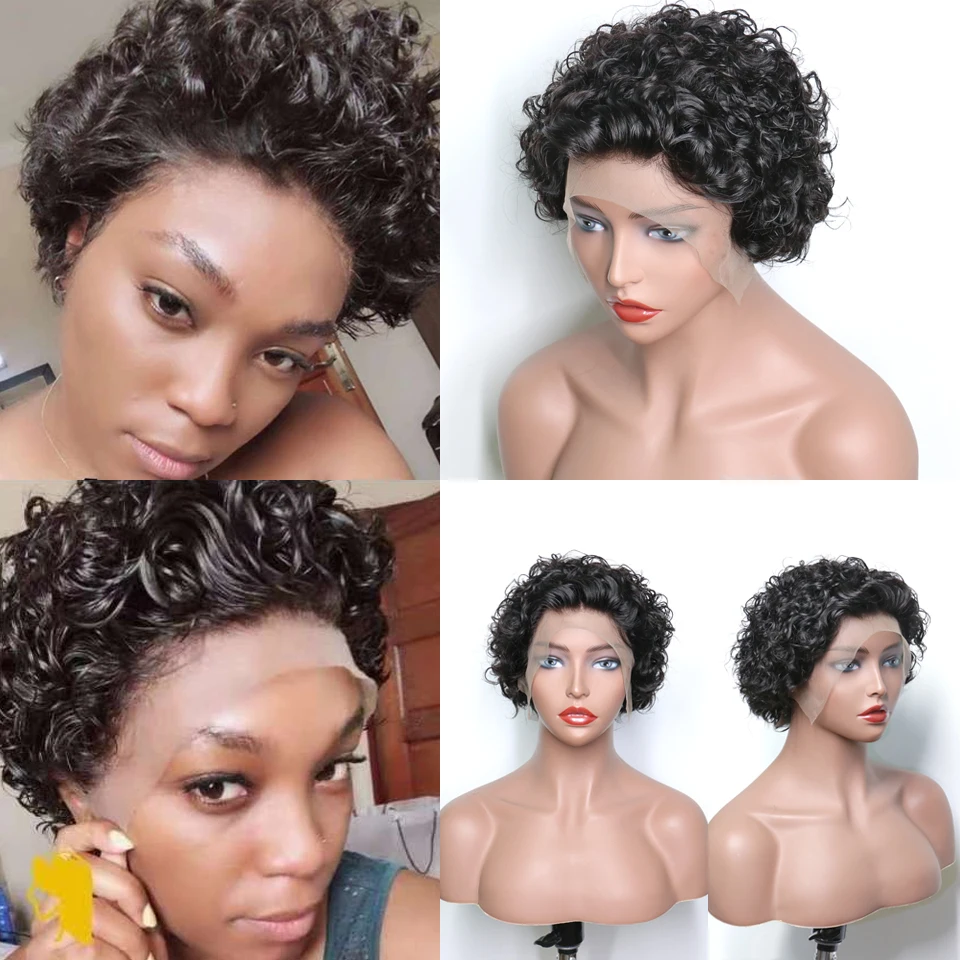 Короткие вьющиеся передние парики из человеческих волос на сетке для черных женщин, бразильские волосы без повреждения кутикулы, парики 6 дюймов, предварительно выщипанные 180% плотные парики на сетке