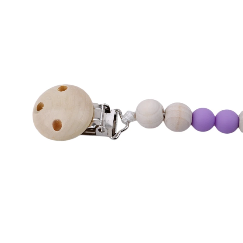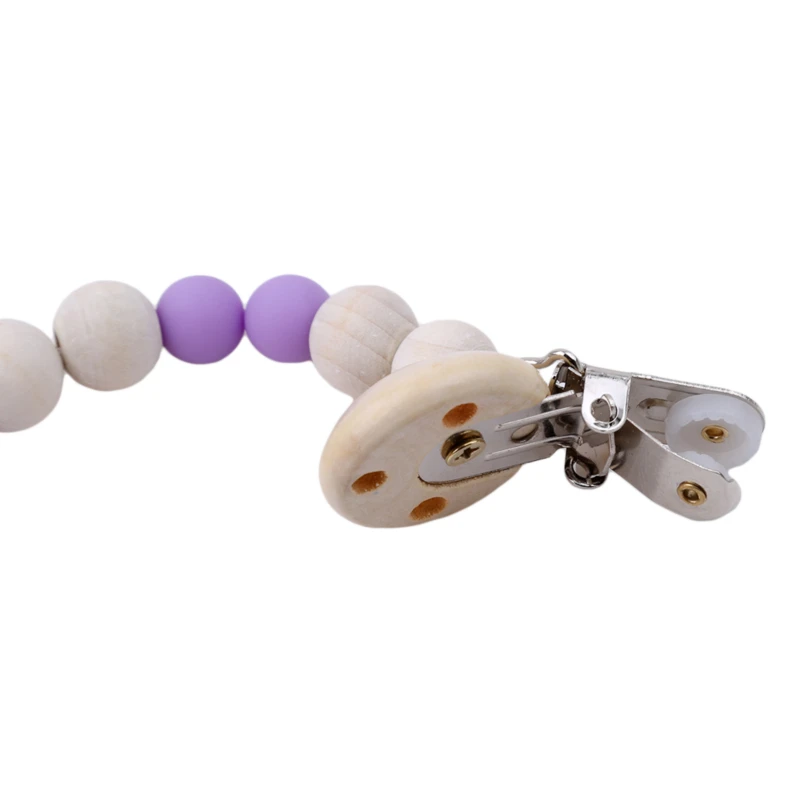 100% новый, высокое качество. Материал: Деревянный. Тип: цепочка с зажимом для соски для младенцев Цвет:5 цветов. Длина цепочки: 24 см.