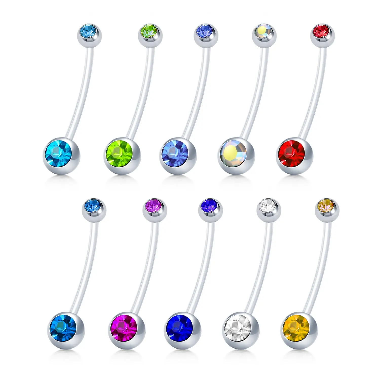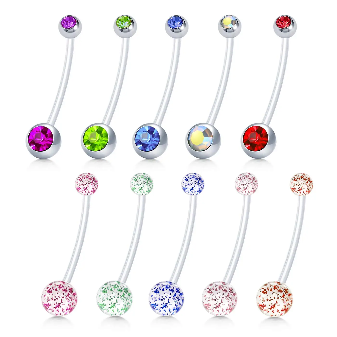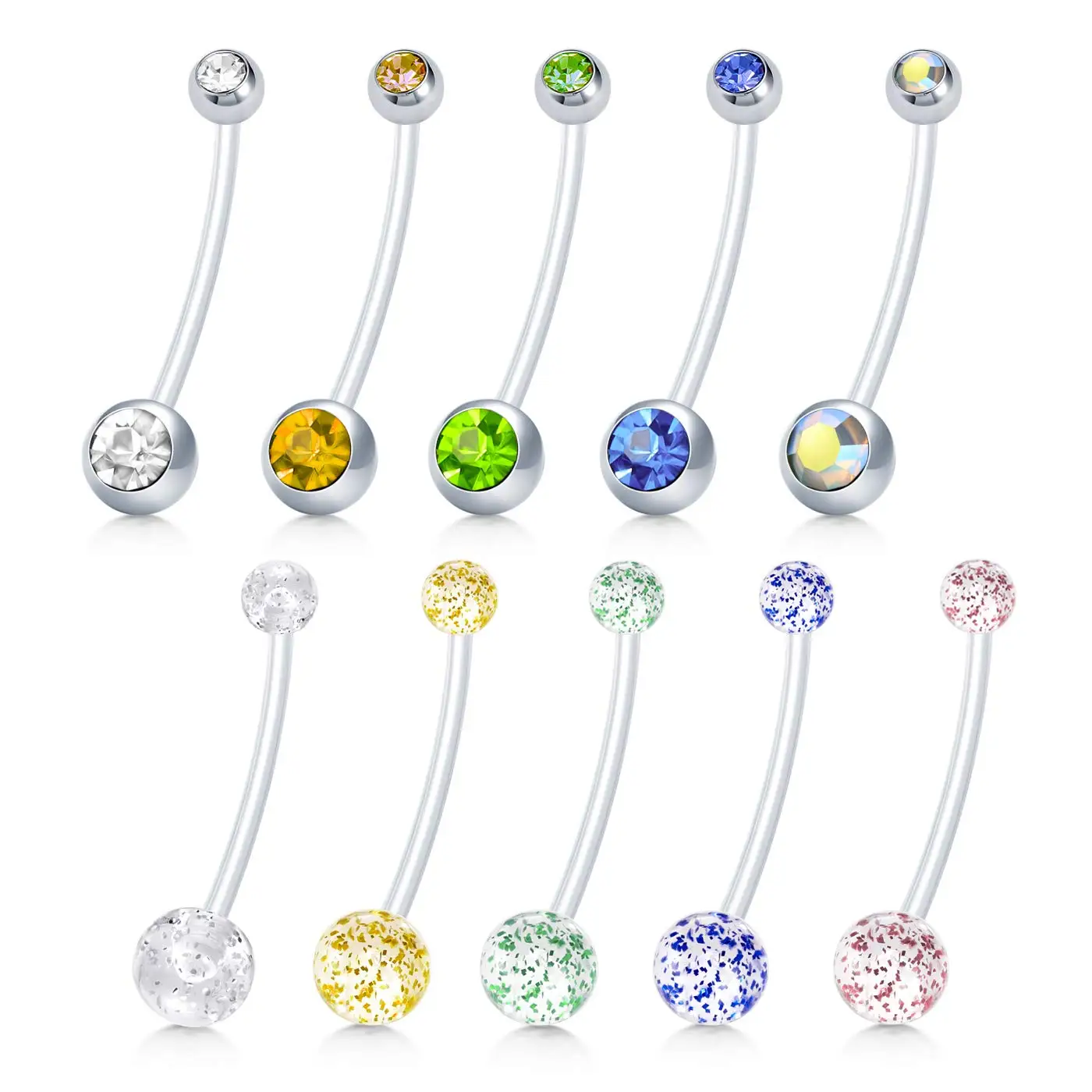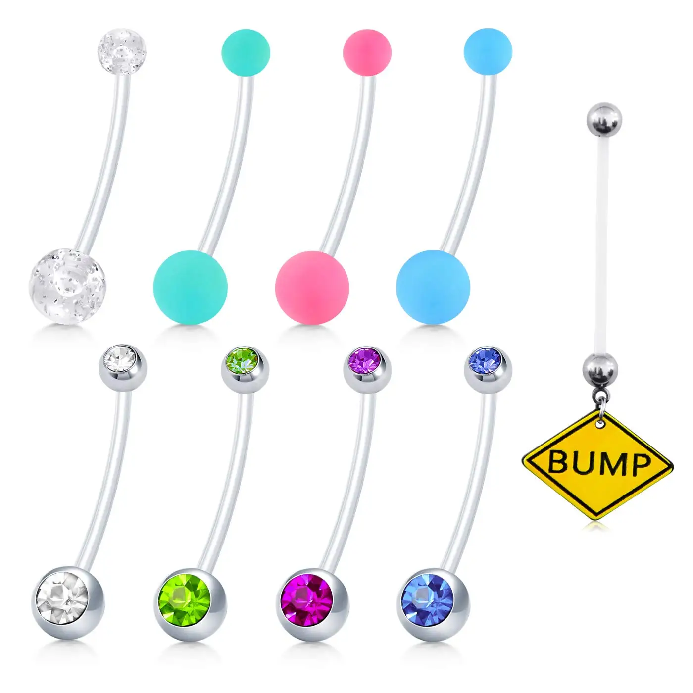 JFORYOU 9-10 шт. 14 г акриловые кольца Bioflex для беременных на кнопках для живота-удлиненная пупка штанга бижутерия для тела, пирсинг, фиксатор