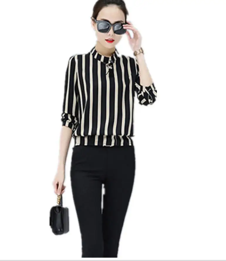 Новинка, весенне-летняя блузка, тонкая рубашка с рукавами семь точек, осень 2019, свободная рубашка, Удлиненная рубашка в полоску, 1202019