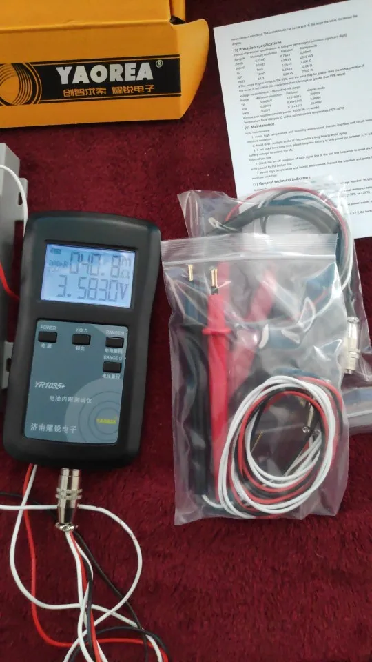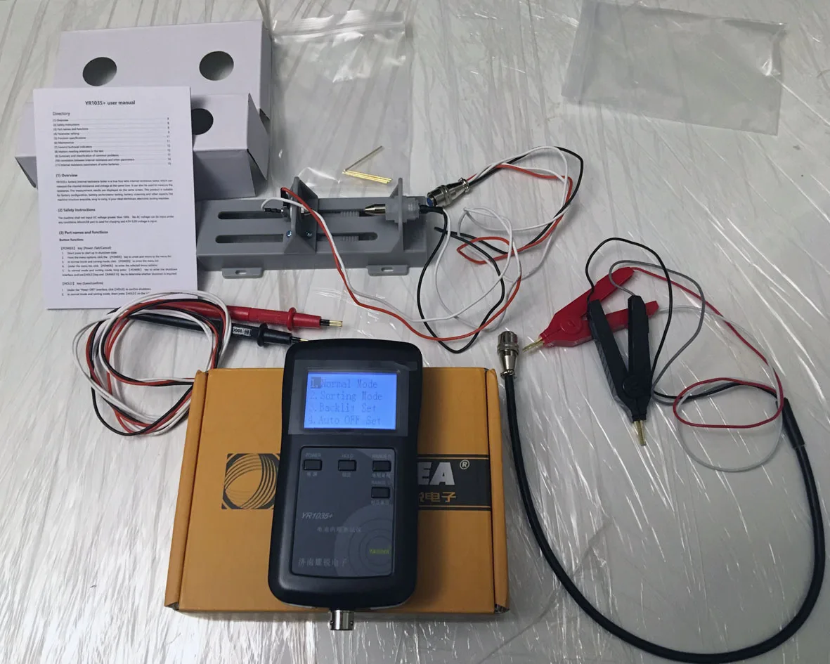 YR 1035+ пришёл относительно быстро на почту, упакован нормально. Меню на английском языке, провода мягкие, внутри вместительный литиевый аккумулятор 18650, заряжается током 400 mAh, (я залил 1500mА при том, что он уже был примерно наполовину заряжен) измерения выдаёт СТАБИЛЬНЫЕ, 5-разрядный дисплей с подсветкой, в руке лежит приятно. Я доволен