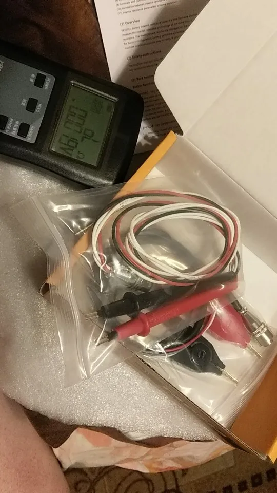 Доставка 7 дней до Саратова очень быстро!!! упаковка почтовый пакет +пенофол+ пупырка + коробка завод взял полный комплект совсеми щюпами продавец молодец положил второй запасный комплект позолоченных подпружиненных зондов ( иглы щупа ) 4 штуки при включении загрузка прибора на китайском как и инструкция и меню но измерения на английском калибровка есть в меню но лучше туда не лазить так как прибор настроен на заводе и готов к работе так как у прибора 4 проводная схема измерения с автоматической коменсацией сопротивления щупов погрешность 0,001 % очень точно но если нужно в инете есть видео где ребята всё перевели по меню и можно настроить как вам нужно в целом прибор отличный берите не пожалеете своих денег стоит я за 30 минут отбраковвл все акомуляторы что у меня были