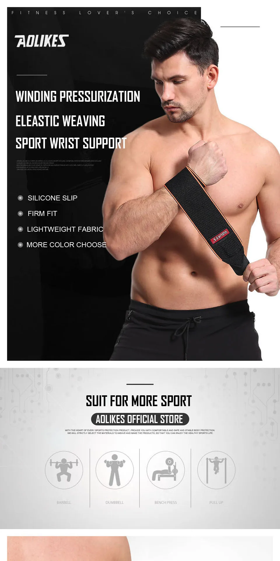 1 пара спортивных эластичных повязок AOLIKES, регулируемый браслет для запястья, бандаж для поддержки запястья в тренажерном зале, безопасный браслет для кроссфита
