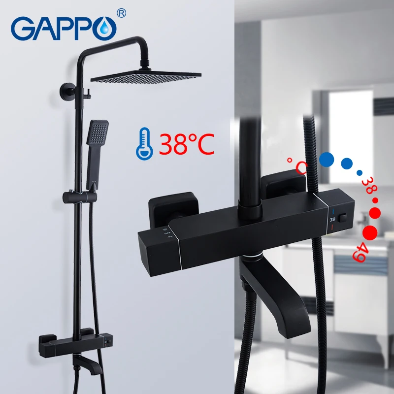 Смесители для душа Gappo, черные, Термостатические, для ванны, для холодной и горячей температуры