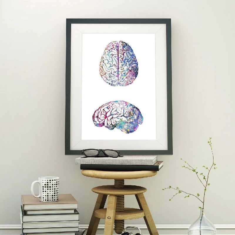 Плакаты и принты с изображением анатомии человеческого мозга, красочные акварельные настенные картины, биология, наука, медицинская живопись, подарок