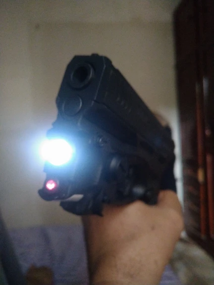 Я думал он пластиковый, а он металлический весь (аллюминий). Приятный сюрприз. Фонарик слабый, но в помещениях сойдет, точка лазера толстая и ппц яркая.