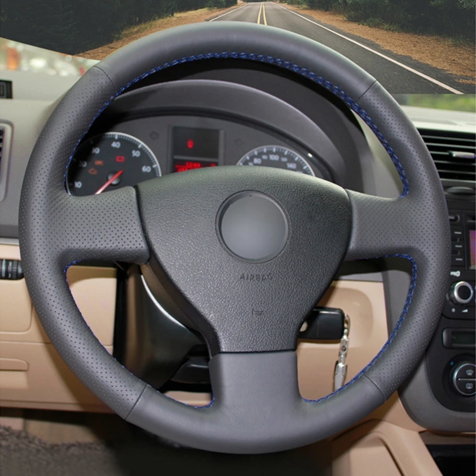 Искусственная кожа черная чехол рулевого колеса автомобиля для Volk...