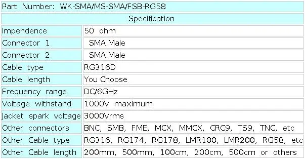 NameLow Loss SMA Male to SMA Male RG316D Wire Extension