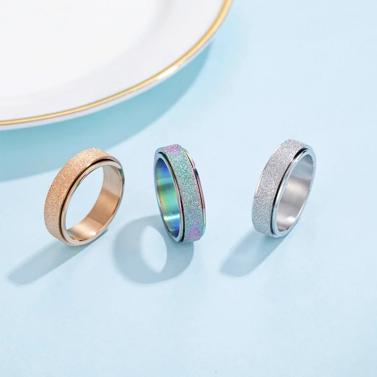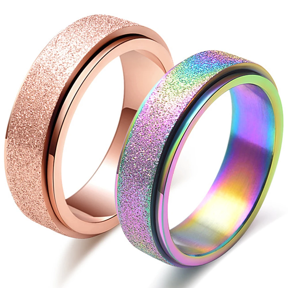 Женские вращающиеся кольца из титановой стали розового золота, матовые цветные кольца для лечения беспокойства, свадьбы, помолвки, матовое кольцо для пары