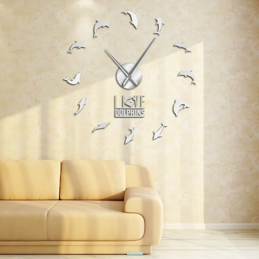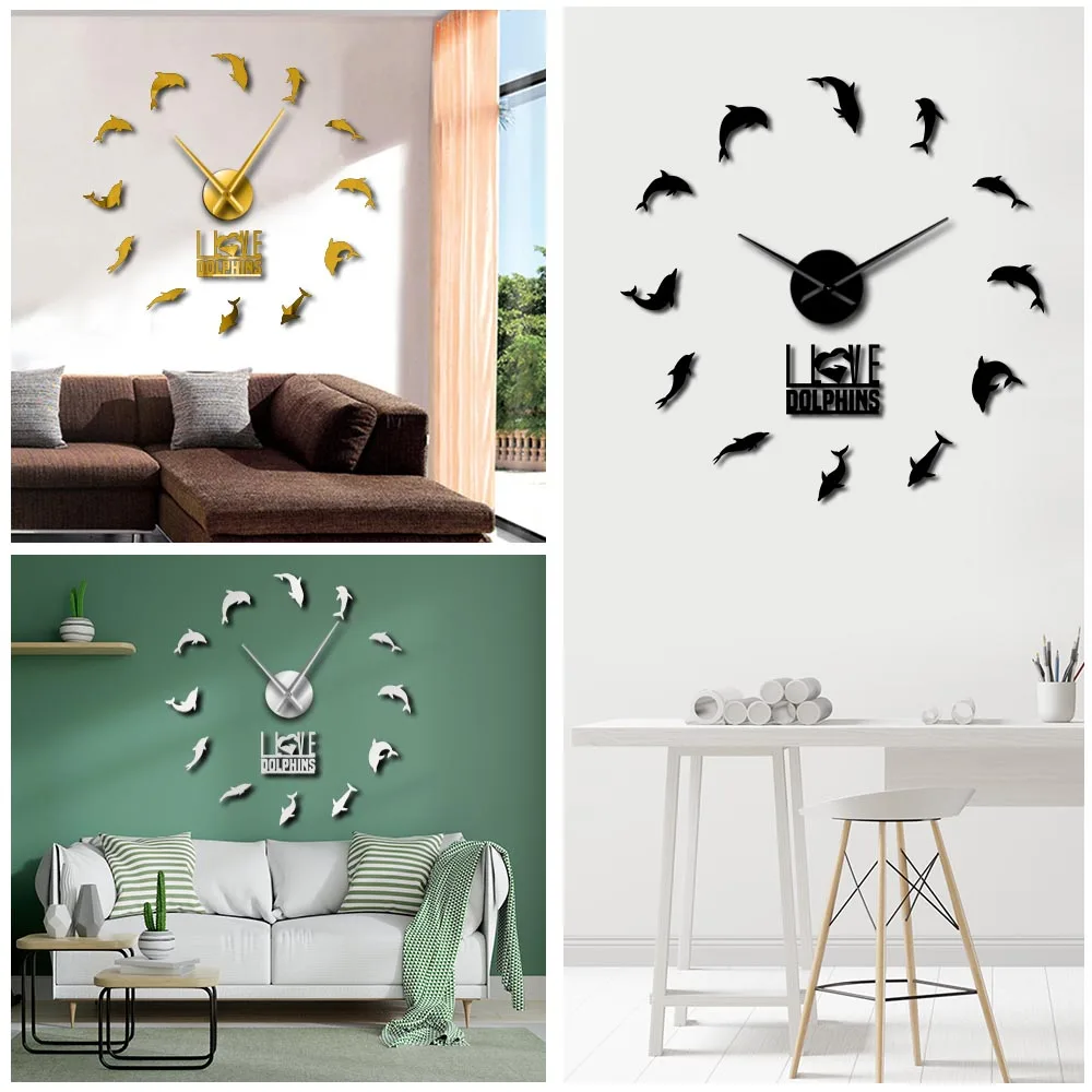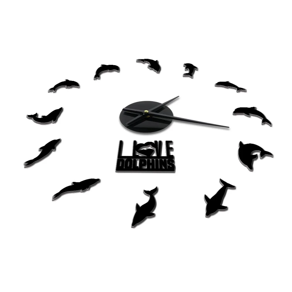 Часы настенные с 3d-изображением морских животных и дельфинов, самоклеящиеся, с батарейкой