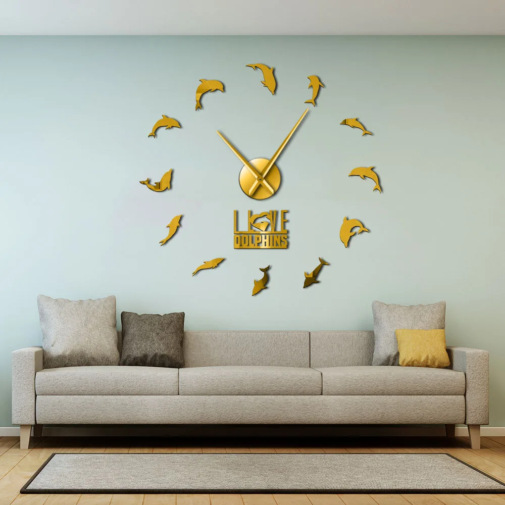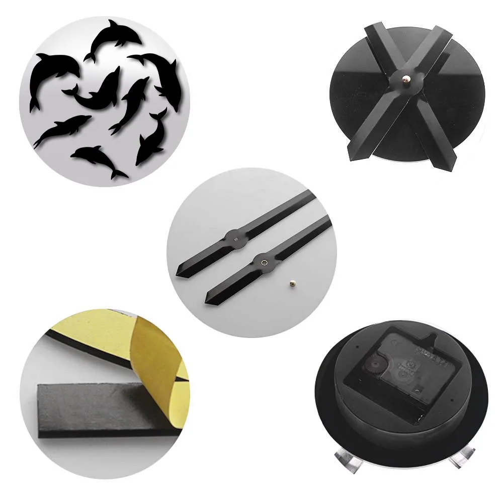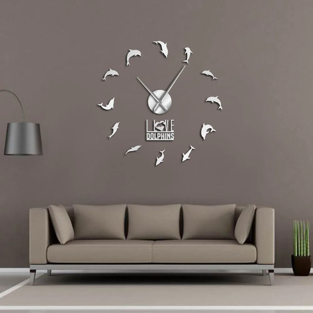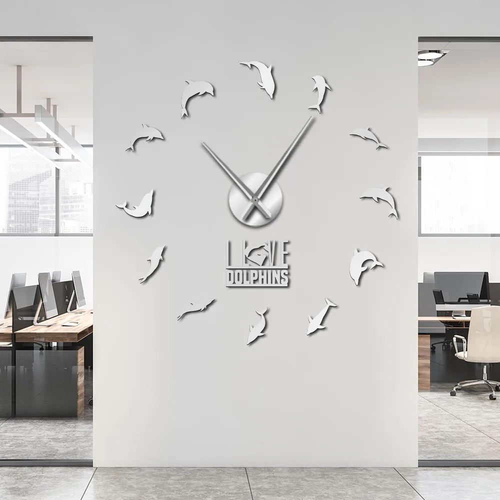 Часы настенные с 3d-изображением морских животных и дельфинов, самоклеящиеся, с батарейкой