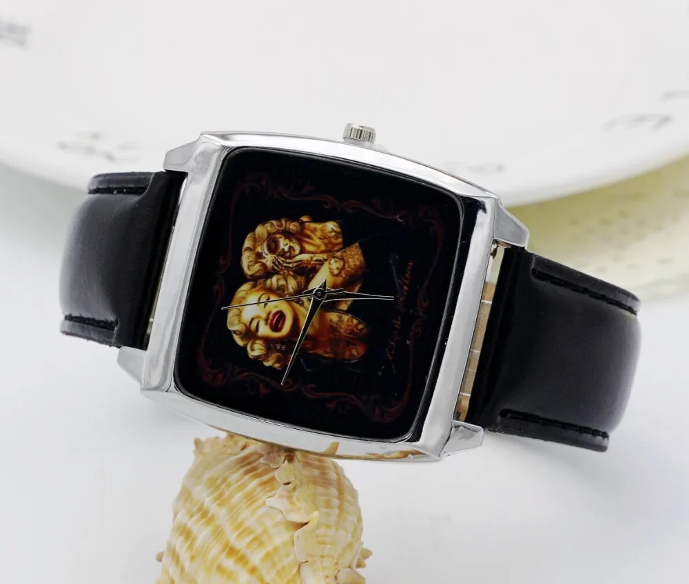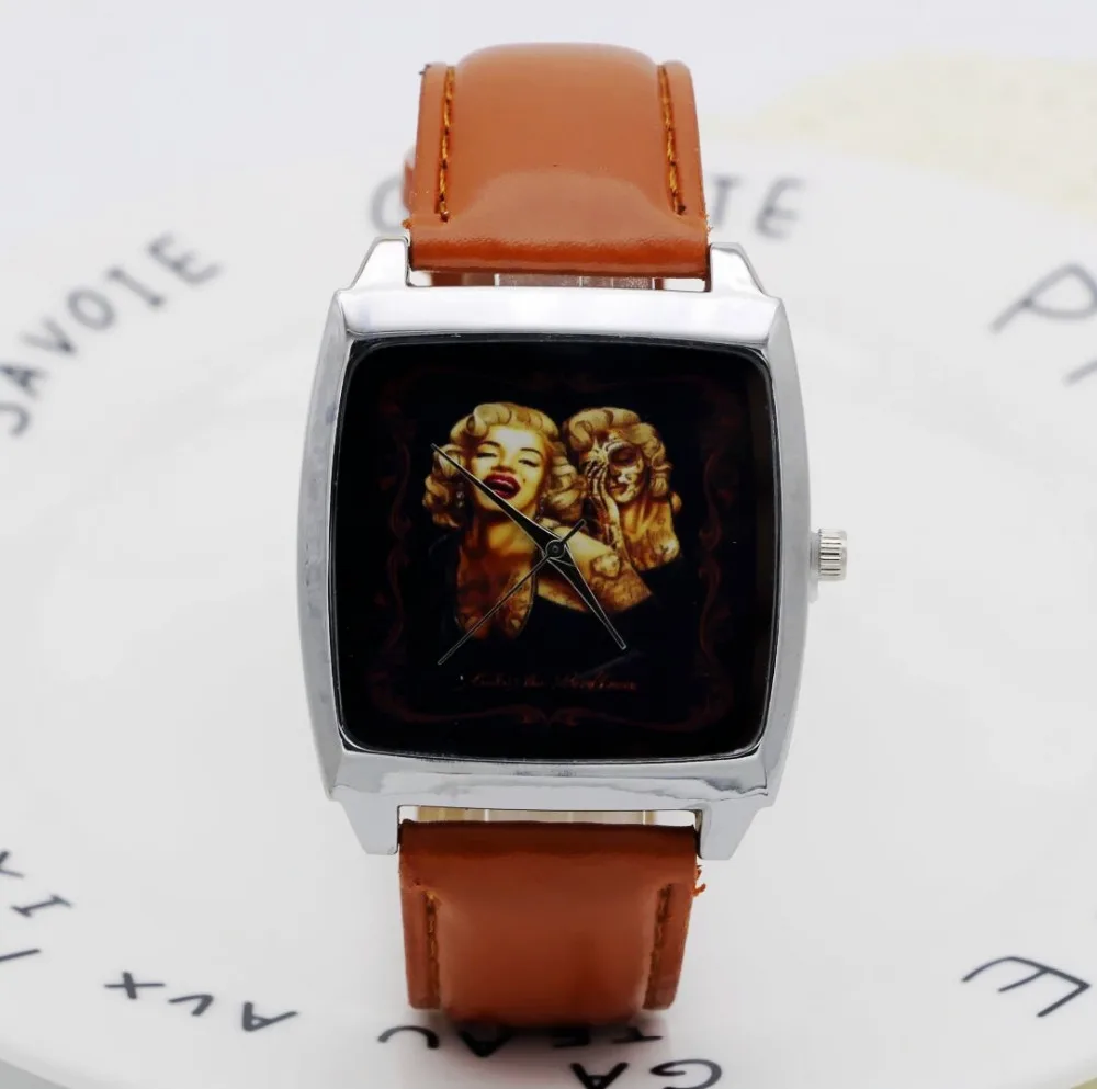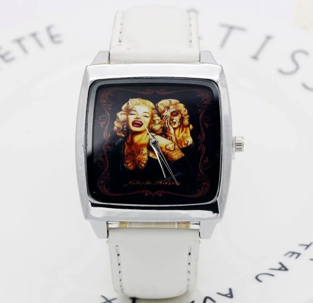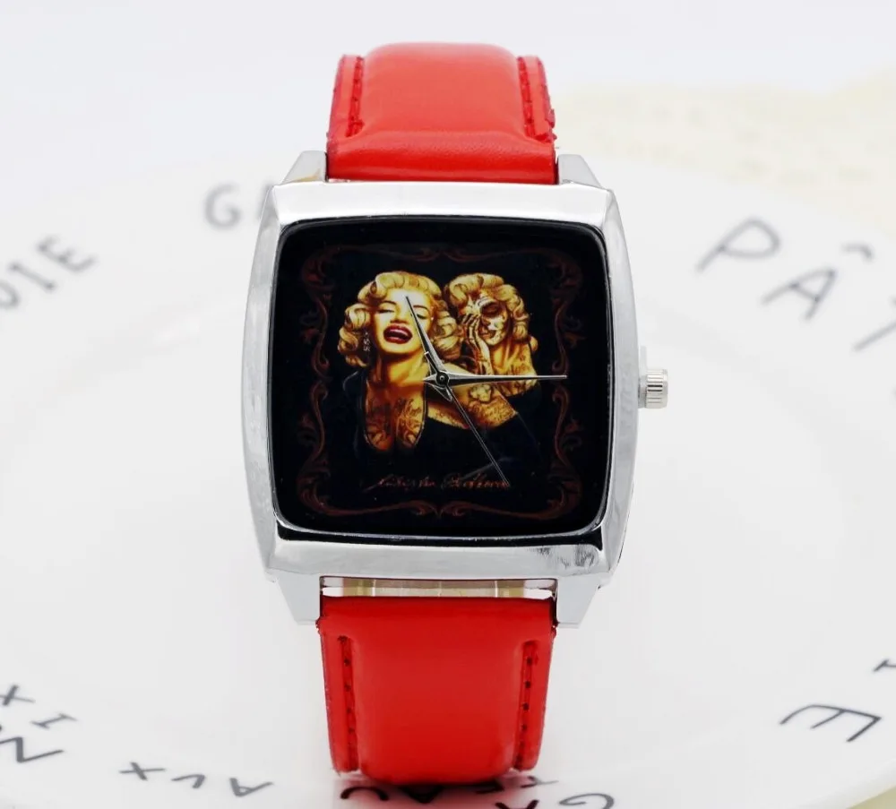 Женские и Детские кварцевые наручные часы с прямоугольным циферблатом и кожаным ремешком в стиле Мэрилин Монро, 2019