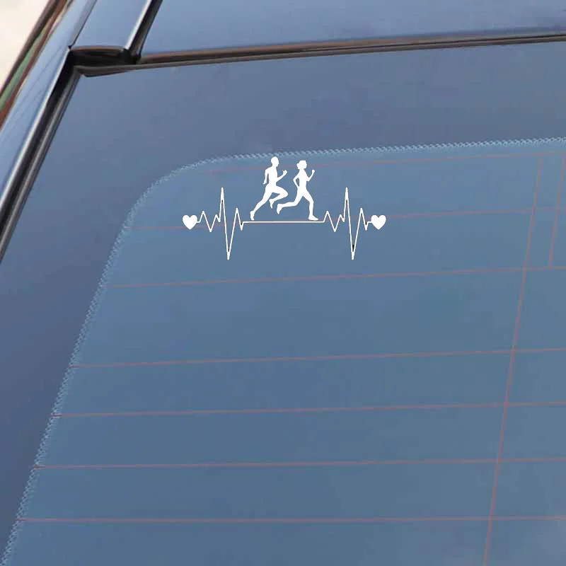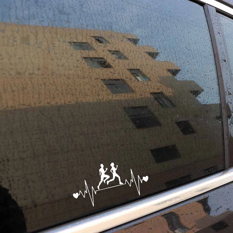 YJZT 17,3 см * 9 см бег Семья сердцебиение спасательным кругом виниловые наклейки для автомобилей и мотоциклов, Стикеры C22-1182
