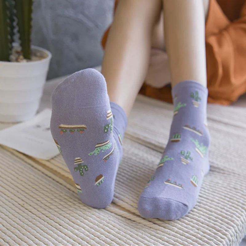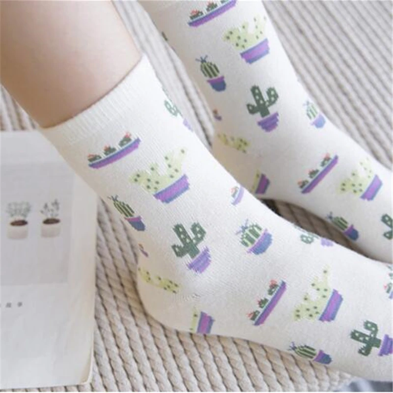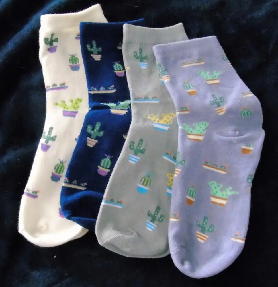 Носки женские хлопковые, однотонные, жаккардовые, с изображением кактуса, всесезонные, 2021