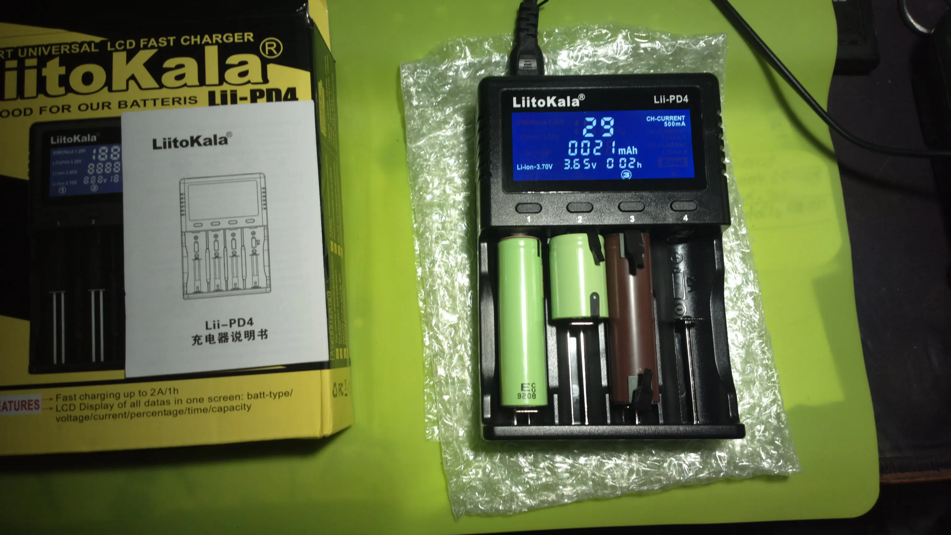 Посылка шла 20 дней, немного помята упаковочная коробка, но это скорей всего почта кидает как попало. Всё соответствует описанию, проверил на разных аккумуляторах, всё работает, зарядка идет быстро. пока впечатления самые хорошие.