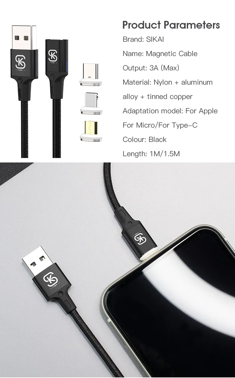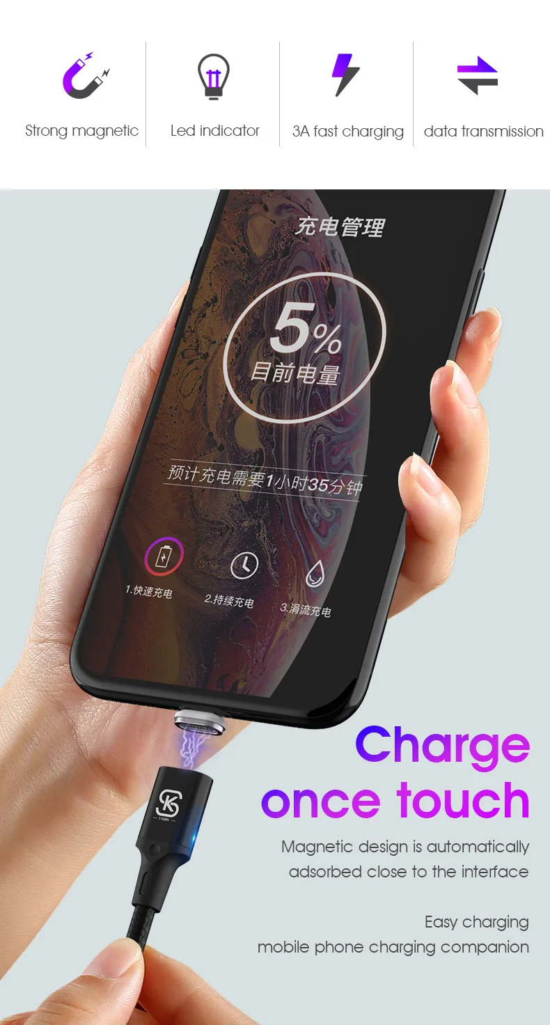 Магнитный зарядный кабель SIKAI 5-го поколения, кабель Micro USB C ...