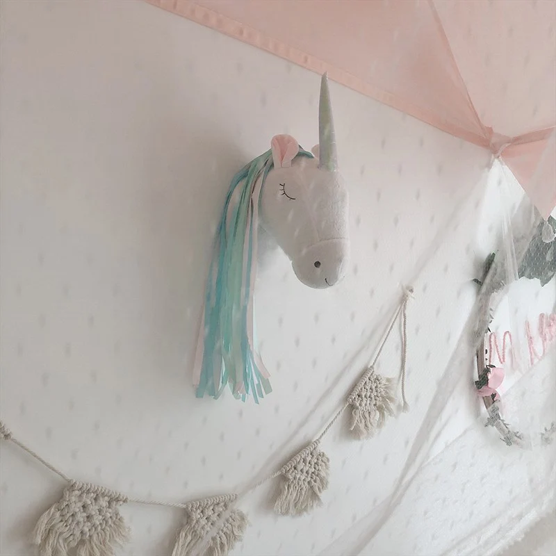 Единорог Мягкие животные плюшевые игрушки 3D Животные голова настенное крепление для девочек украшение детской комнаты Аксессуары для детской спальни