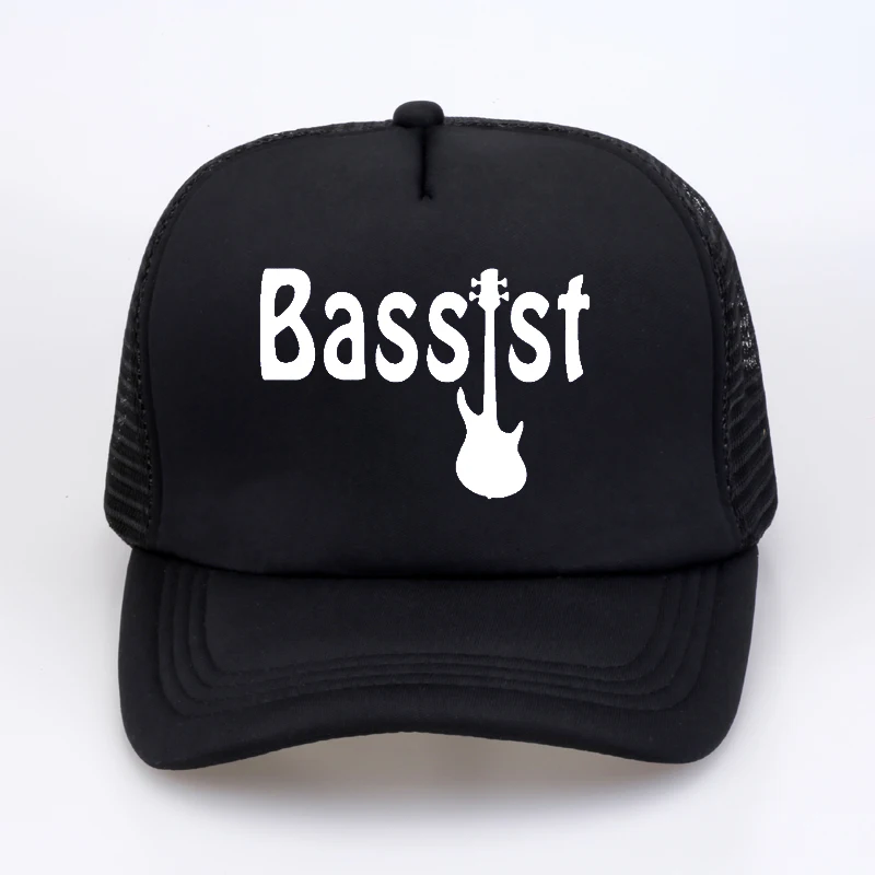 Новинка, стильная забавная бейсболка с рисунком басов, рок-гитарист, крутая летняя сетчатая Кепка-тракер, Бейсболка унисекс