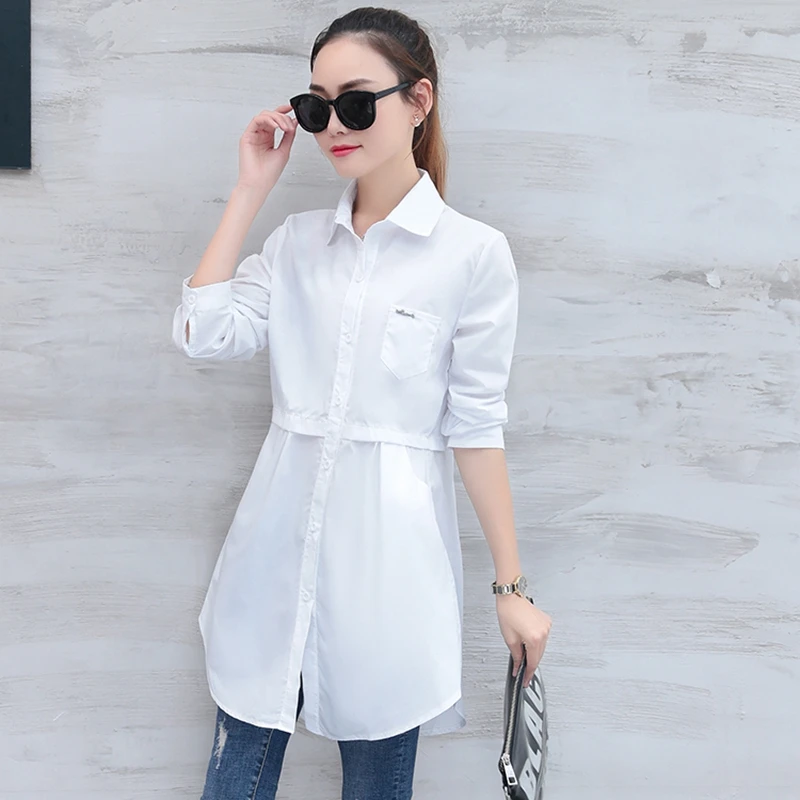 Рубашка женская хлопковая, приталенная, с длинным рукавом, весна-осень