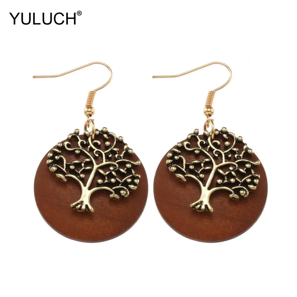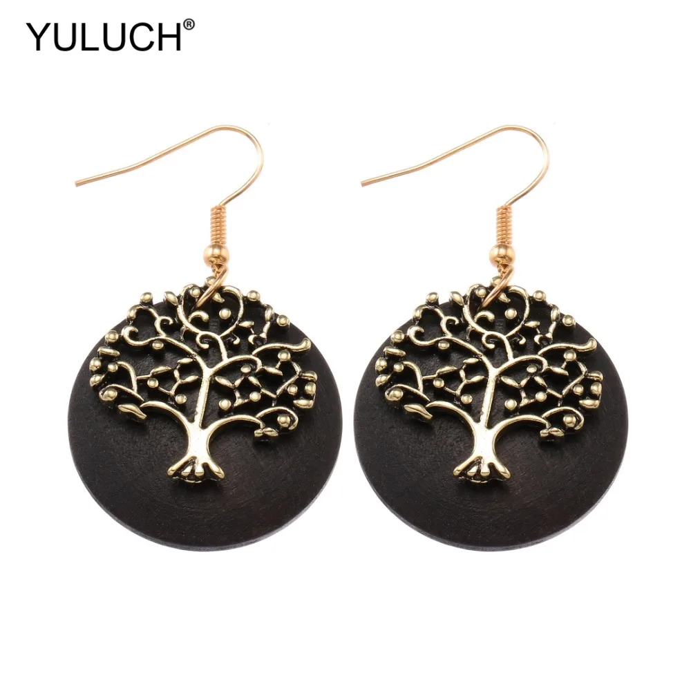 YULUCH большие круглые деревянные серьги из черного дерева в африканском стиле этнические висячие серьги-подвески в стиле бохо женские ювелирные изделия