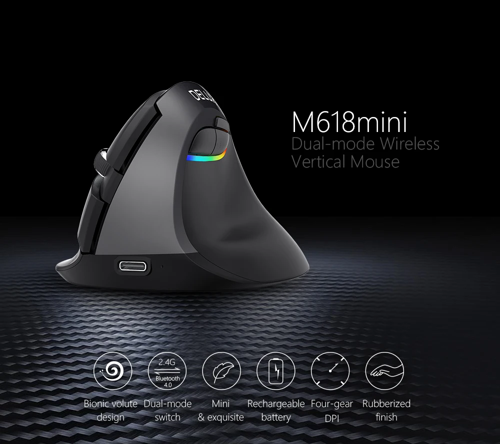 Delux M618 Mini BT 4,0 + 2,4 ГГц Двухрежимная беспроводная мышь эргономичная перезаряжаемая Бесшумная Вертикальная мышь для компьютера
