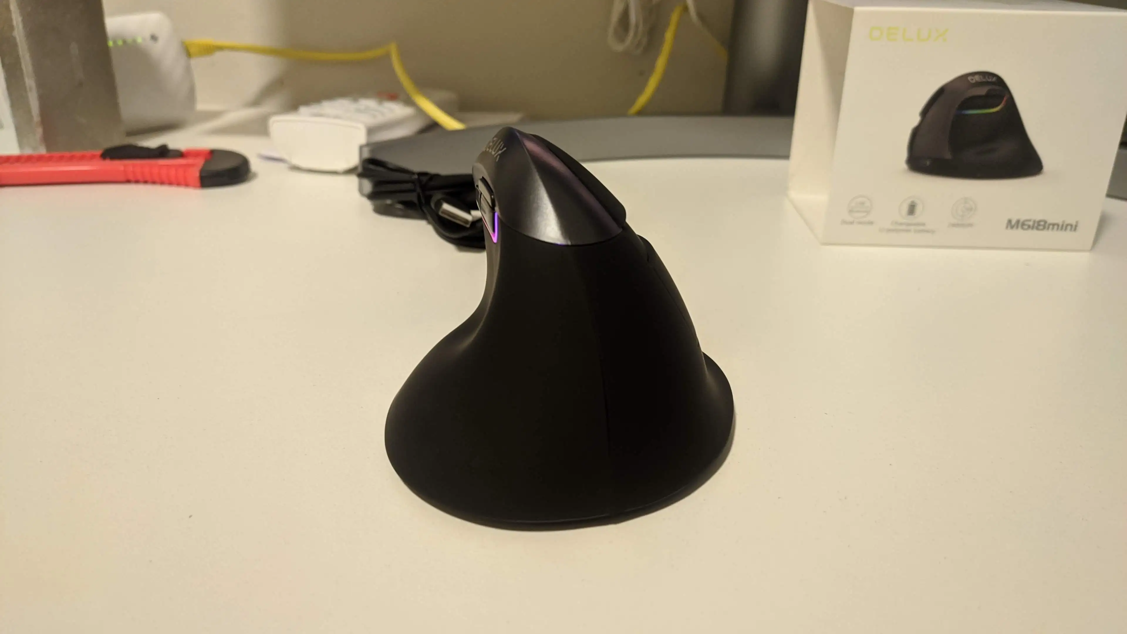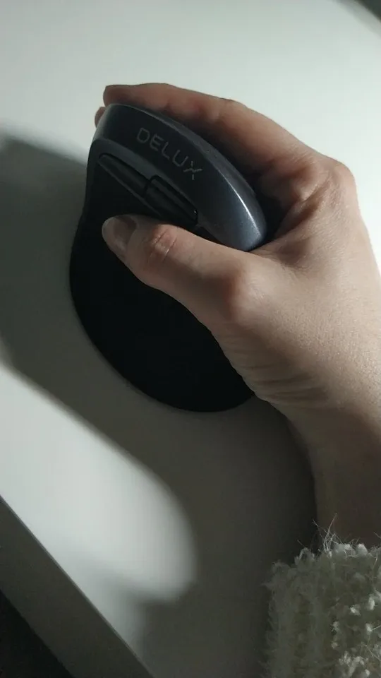 Доставка в Ленобласть из РФ (МСК) курьером iml мгновенно. Два дня с оплаты и я юзаю новую мышь. Это не первая вертикальная мышь (прошлая была дешевле и менее качественная). Работаю в autocad, рука не устаёт. Кнопки почти бесшумны, ход и нажатие колесика плавные. Для небольшой женской руки идеального размера, мизинец лежит на корпусе. Пластик на ощуп бархатистый, подсветка отключается нажатием двух клавиш и колёсика одновременно.