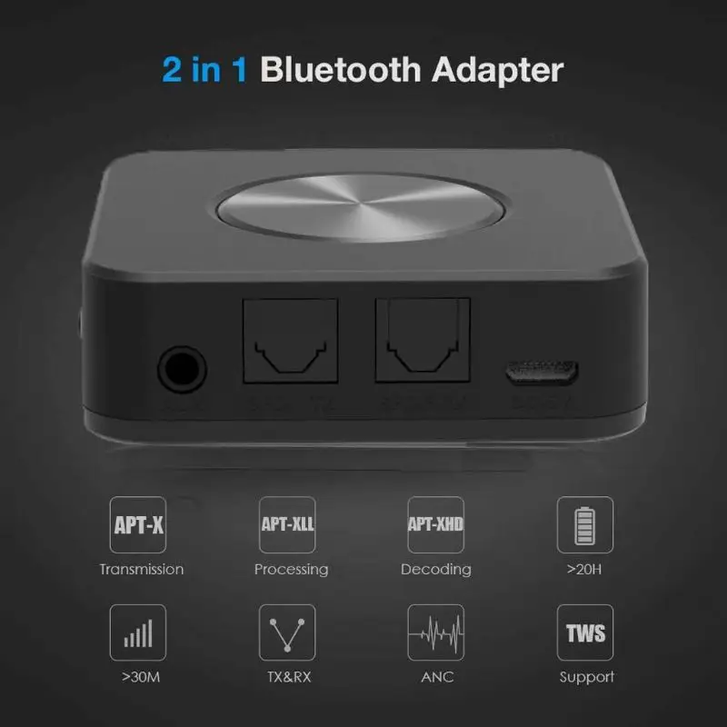 Bluetooth-адаптер 2-в-1 с функцией передатчика и приемника-это единственное беспроводное аудио-решение, которое вам нужно. Вы можете передавать фильмы, телевизор, игры или музыку на bluetooth-гарнитуру, а также получать аудио с мобильного телефонаУстройство или планшет через традиционные Проводные колонки или автомобильные радиостанции. Благодаря беспроводному аудиоадаптеру HiGoing практически любое устройство может быть преобразовано в беспроводной звук. Остановите хлопот неудобных кабелей и кабельных помех с помощью нашего беспроводного приемопередатчика Bluetooth.