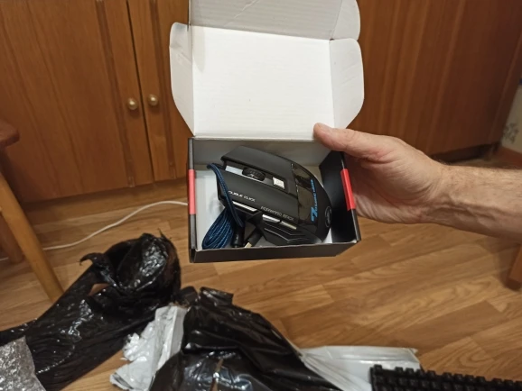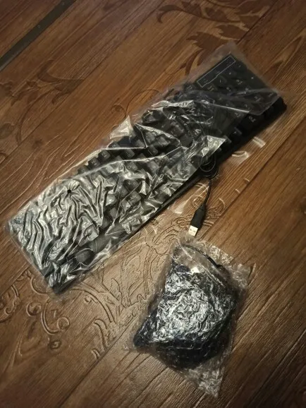 Упаковка помятая , боялся,что будет клава сломана ,но всё обошлось,в целом клава не плохая и мышка тоже,в общем на твёрдую 4.На мышке под краской пылинка на видном месте,на фото видно,не критично ,но неприятно.