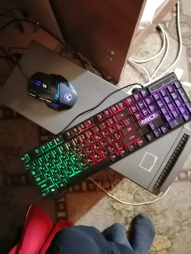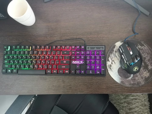 мышка огонь, но работает только на нескольких юсб-портах, хз почему. Ровно ложится в руку, все кнопки работают, хз как в Винде, но можно в играх настроить по настроению, провод четкий. клавиатура стандартная: из плюсов ***подсветка с регулировкой яркости и выключением прямо с клавиш; реально водонепроницаемый корпус; мне привычен такой ход клавиш. из минусов *** в середине под нажатием клавиш продавливается вниз клавиатура - мне не критично, но факт; слишком лёгкая и не имеет резиновых ножек - по некоторым поверхностям скользит; провод коротковат и хлипкий. В целом доволен покупкой, буду рекомендовать друзьям. доставка быстрая