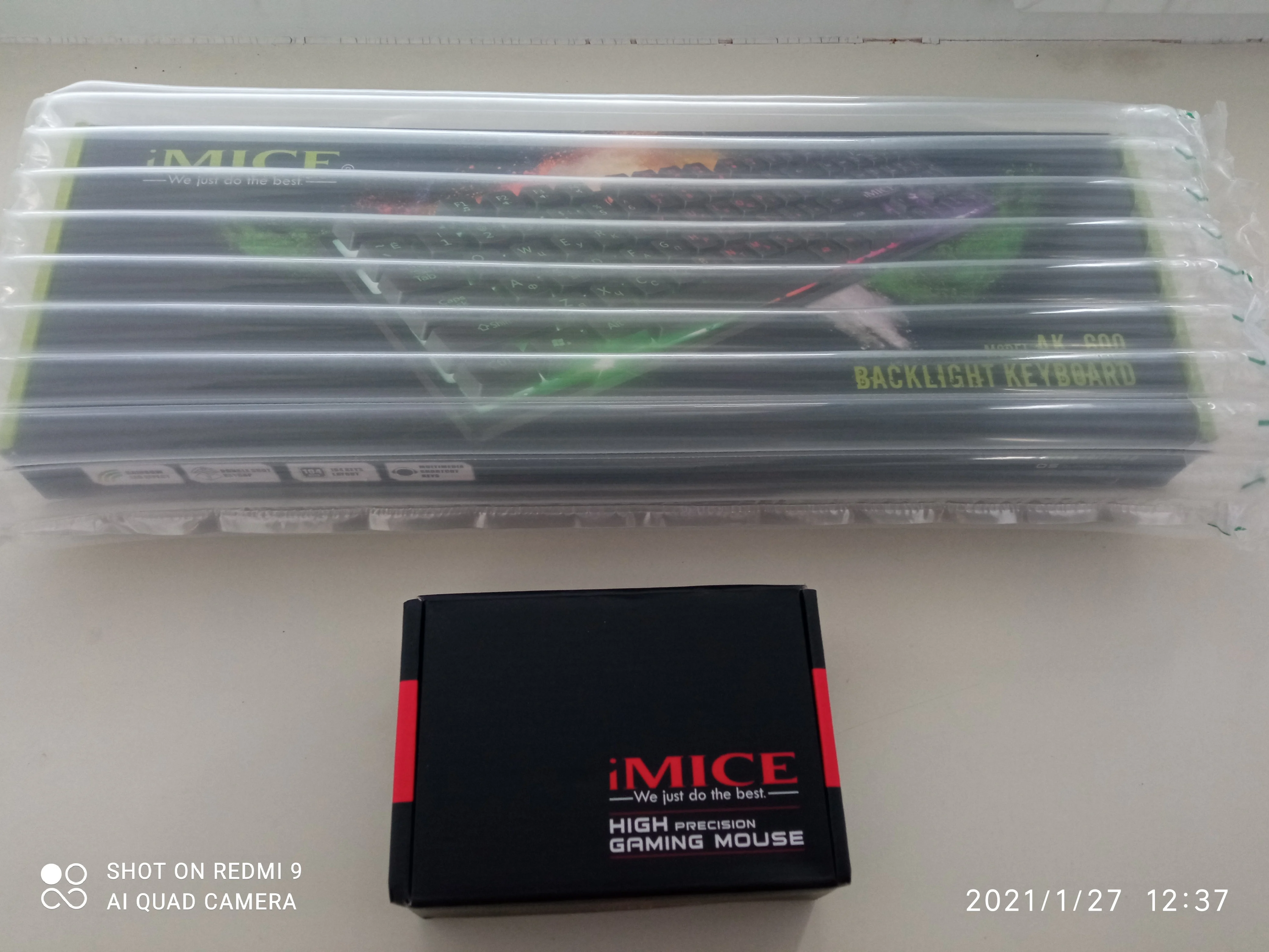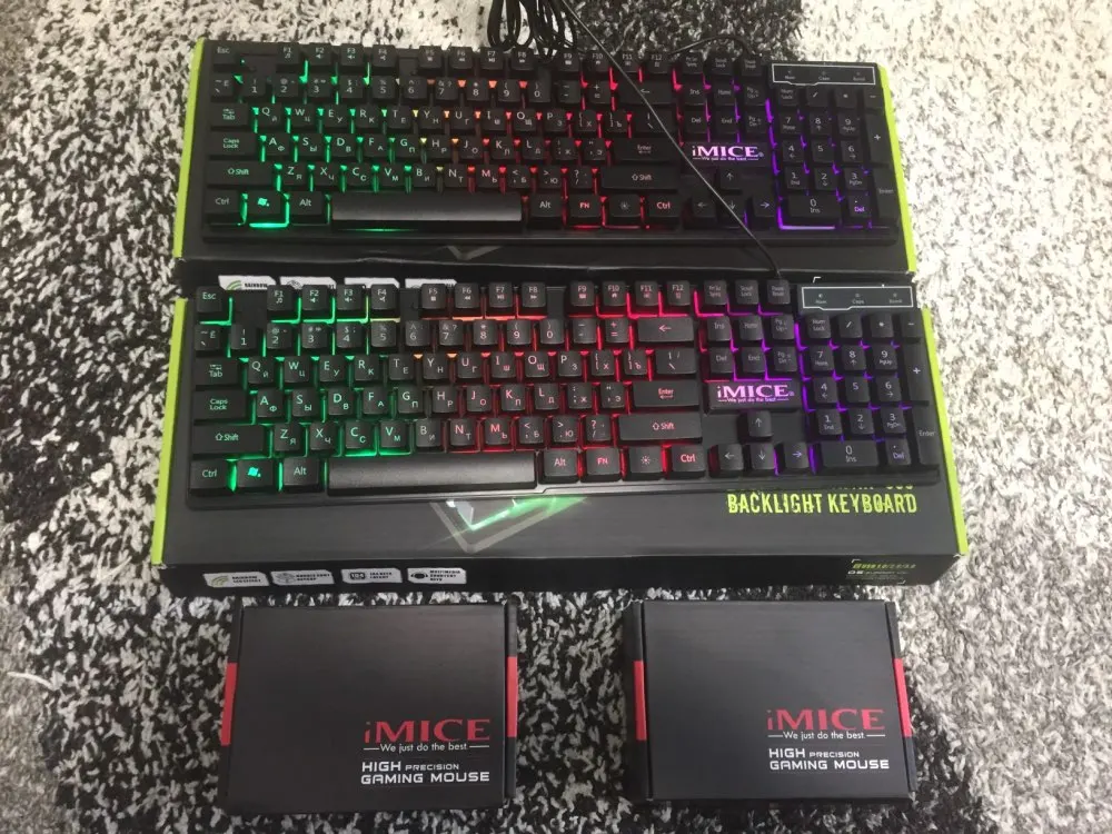 хороший набор: клавиатура и мышка. кнопки на мышке беззвучные, нет привычного щёлканья) очень красиво смотрятся. подсветку на клавиатуре можно по желанию отключать, на ней есть специальная кнопка. упаковано хорошо, в воздушный надувной мешок, всё пришло целое. я довольна!