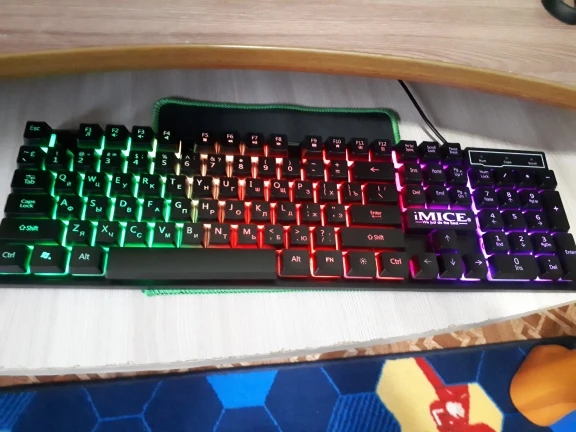 покупали в подарок, младшему брату, доставка быстрая - курьером, до двери, все работает, мышка отзывчивая для руки удобная все кнопки хорошего качества, шнуры в оплётке, клавиатура имеет три режима подсветки - статичная, и две мигающие все клавиши работают, покупкой довольны рекомендую как покупку так и продавца