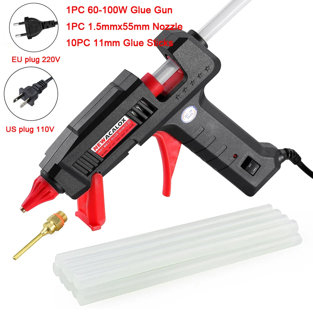 NEWACALOX EUUS 60 Вт 100 вт DIY термоплавкий клеевой пистолет промышленная медная насадка Gluegun 10 шт. 11 мм клеевой пистолет палочки искусство сделай сам инструмент для ремонта