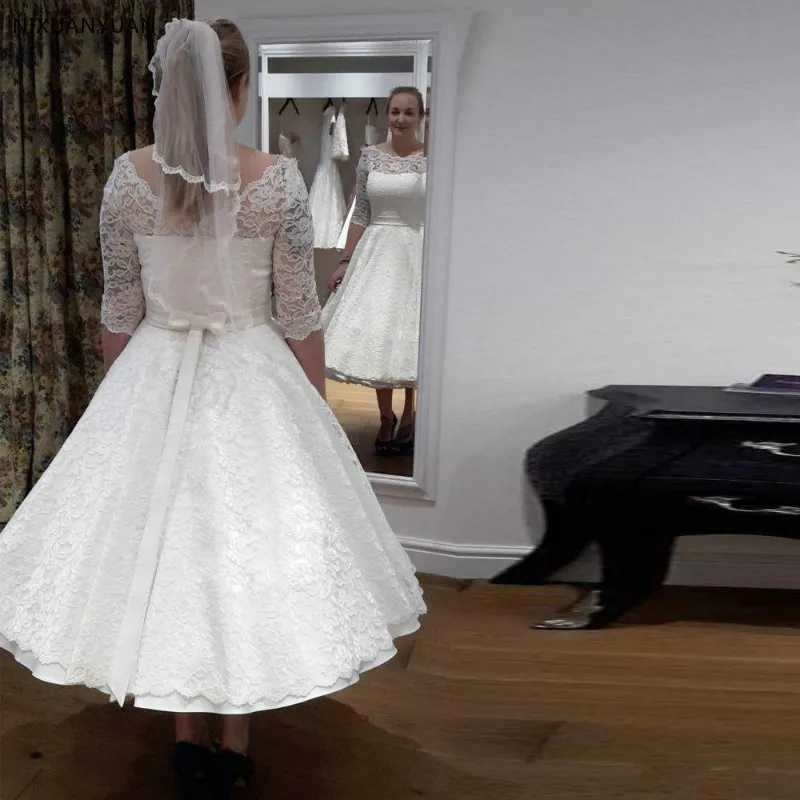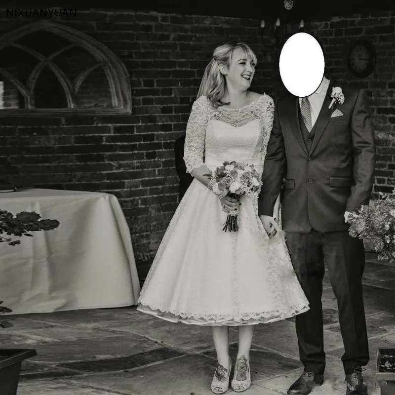 Свадебное платье до середины икры, милое короткое Кружевное платье ...