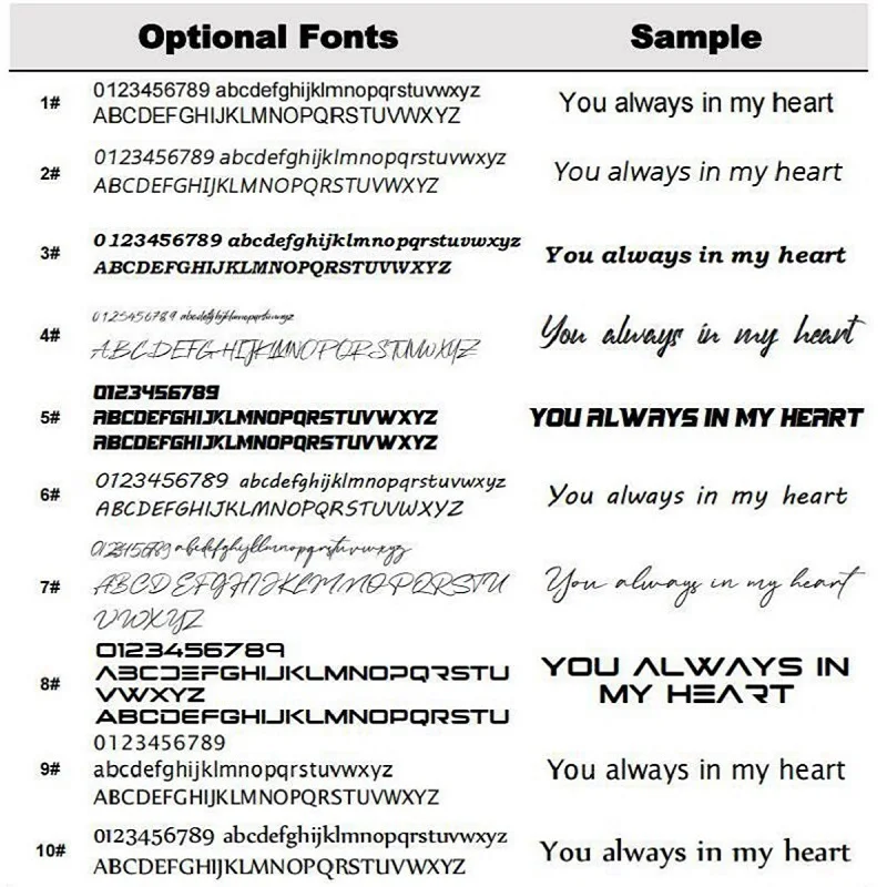 1. Выбранные элементы (стиль/цвет/длина...)----- добавьте в корзину. 2. Оставьте свое сообщение в поле «примечания» или «Dialog box»; *** Текст-что вы хотите выгравировать (Номер телефона, имя, дата, символы, буквы, фразы, ...) 3. Выберите способ доставки и оформление заказа. 4. Если вы забыли оставить отметку, отправьте нам сообщение в службу поддержки клиентов. Например: Текст: золото-Бесконечная любовь Символ A1 Шрифт 1 # Примечание: Если нет сообщения или заметки, мы вышлем вам пустой