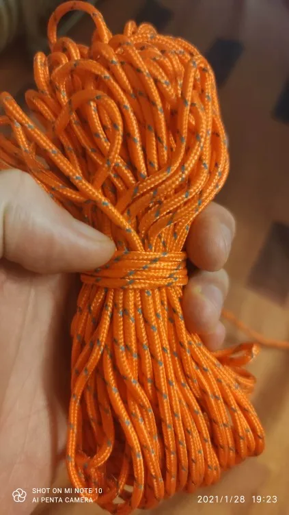 Хороший шнур- для ветро оттяжек палатки самое то. Длина 19.5м. Доставка 15 дней УкрПочтой. Спасибо.