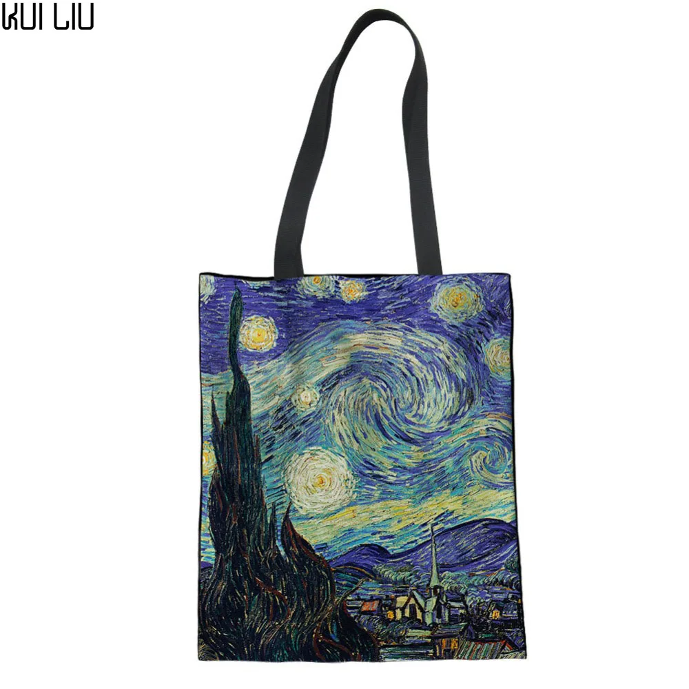 Классическая холщовая Сумочка под заказ, эко-многоразовая Складная женская сумка для покупок, с принтом Винсента Ван Гога звездной ночи