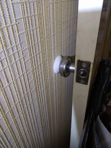 Нормально гасит удар от ручки двери. Брал в цвет обоев, сильно не заметно.
