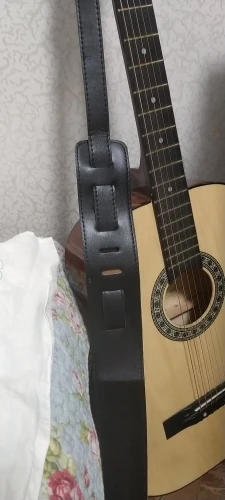 Регулируемый мягкий из искусственной кожи толстый ремень для электрической акустической гитары бас ЧЕРНЫЙ MAR28
