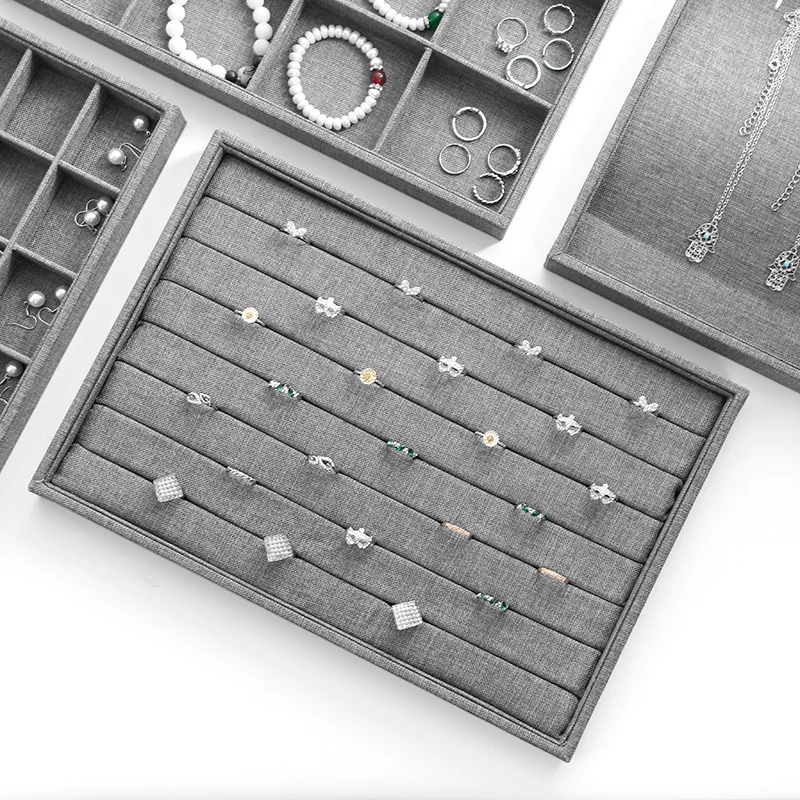 Серый льняной Штабелируемый Лоток для ювелирных изделий, органайзер...