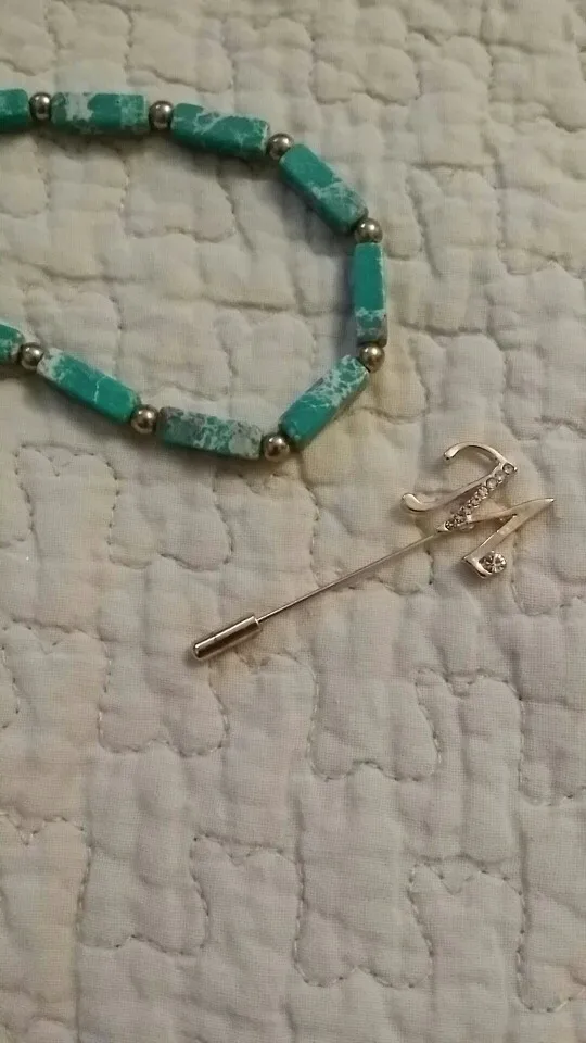 Красивая брошь-булавка. Пришла целая, упаковано надёжно.