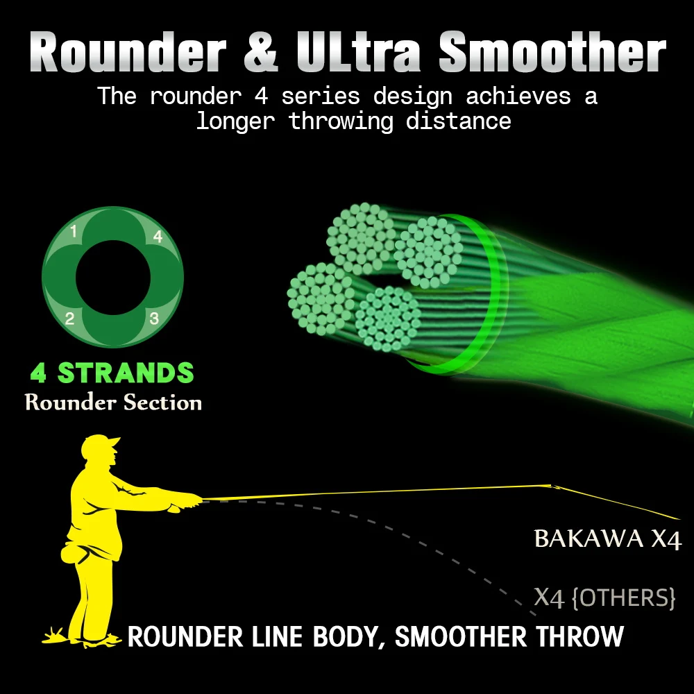 BAKAWA 1000 м 4-жильная плетеная рыболовная леска из ПЭ Multifilamento Рыбалка внахлыст карп; Рыбалка линии 10 ~ 85lb 100% pe