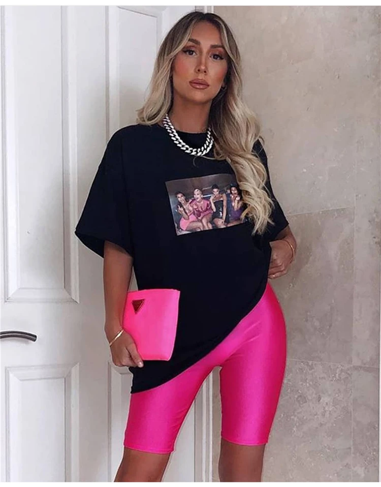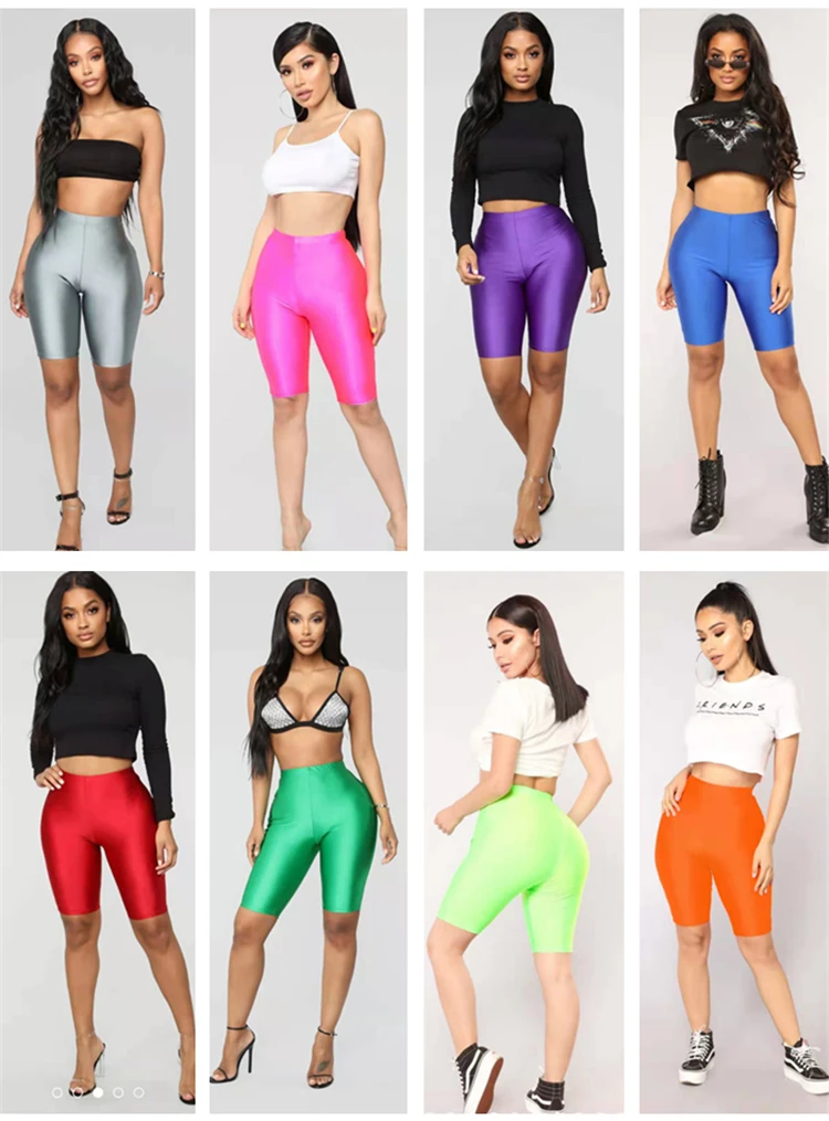 Велосипедки NewAsia Neon размера плюс женские, однотонные облегающие шорты с высокой талией из спандекса, розовые пикантные облегающие шорты, лето 2019