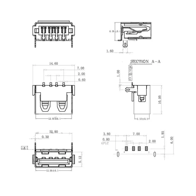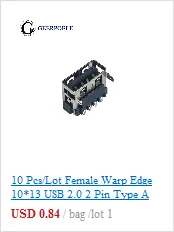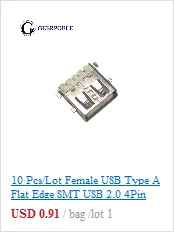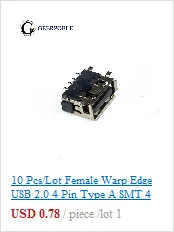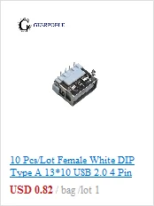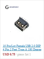 10 шт.лот гнездо USB 4 Pin DIP Тип A задний ряд 2 фута разъем Разъем Розетка с крышкой сиденье сварочный провод адаптер